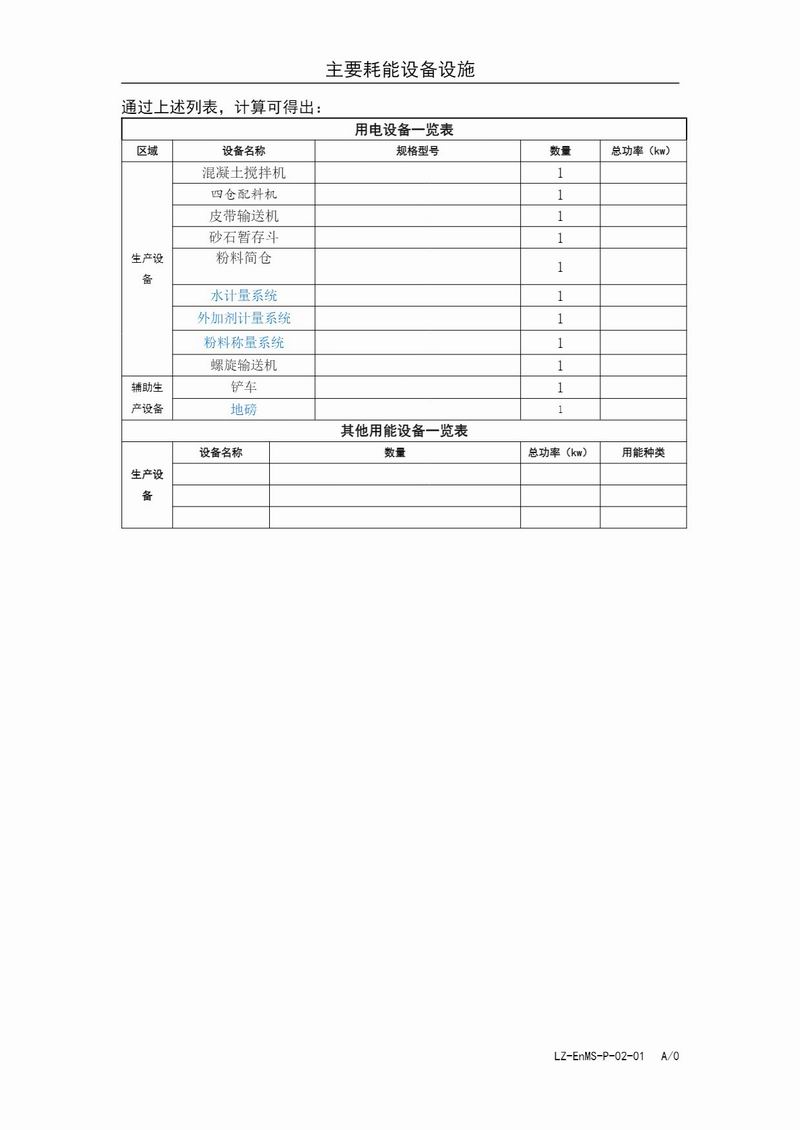 主要耗能設(shè)備設(shè)施