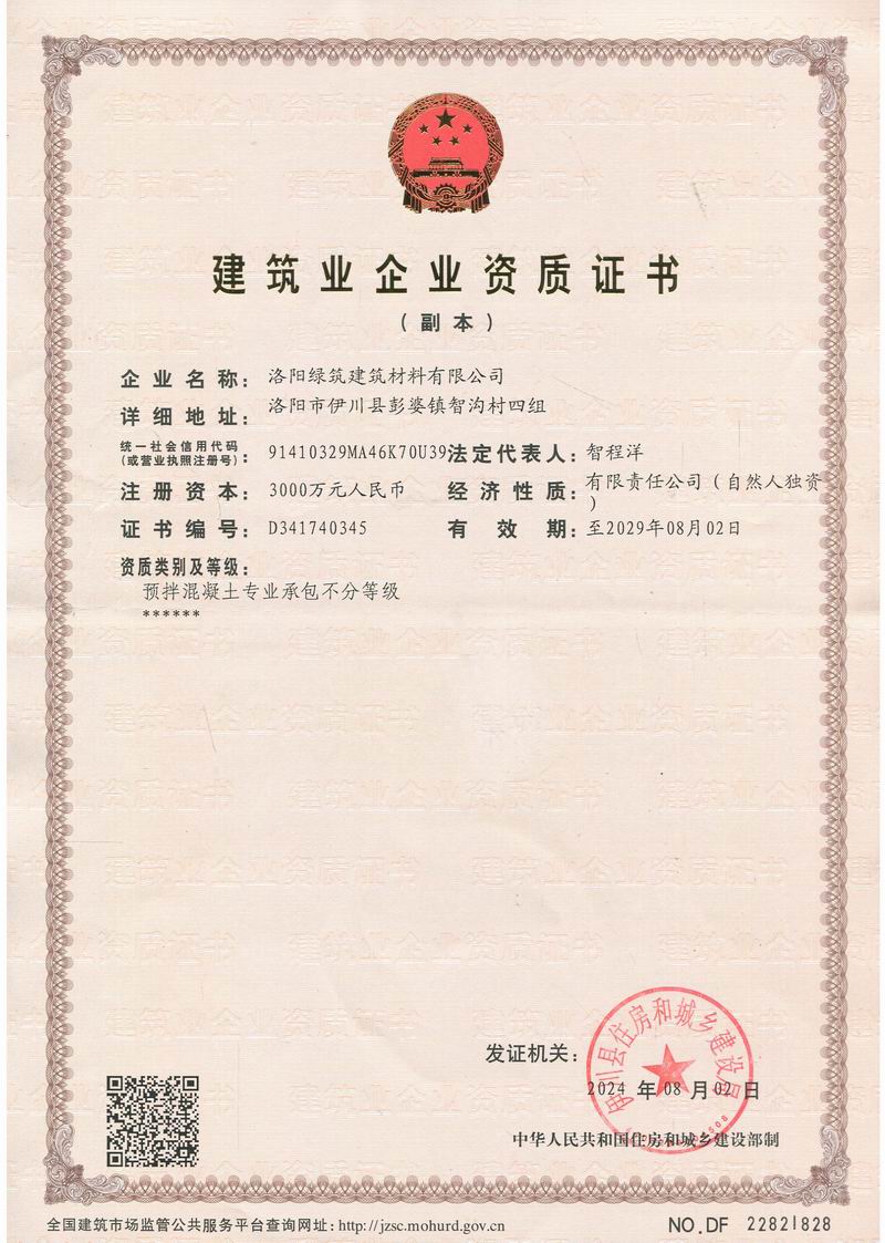建筑業(yè)企業(yè)資質(zhì)證書(shū)副本