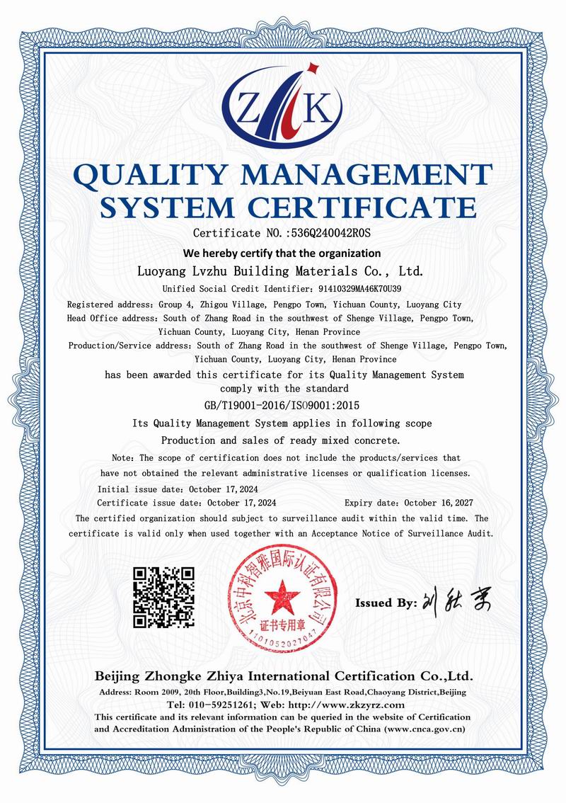 質(zhì)量管理體系認(rèn)證證書(shū)-英文