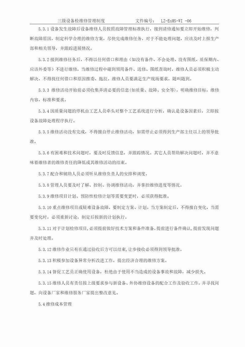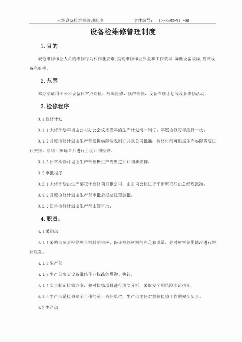 設(shè)備檢維修管理制度