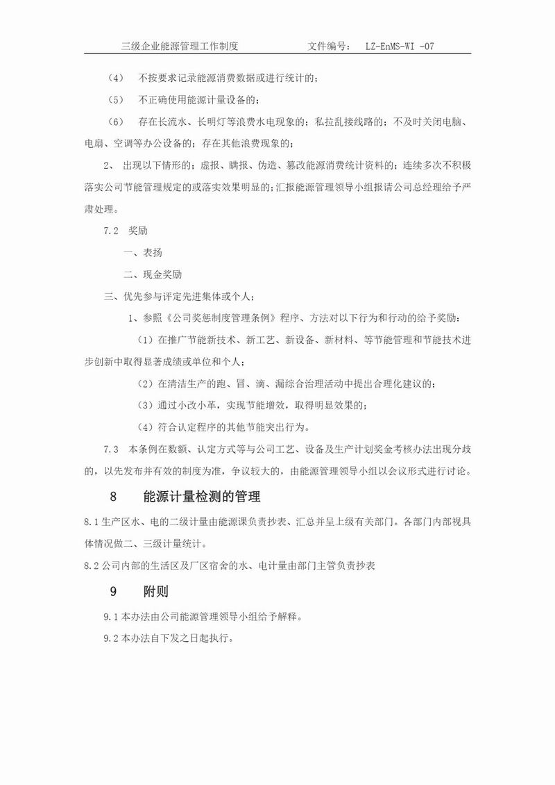 企業(yè)能源管理工作制度