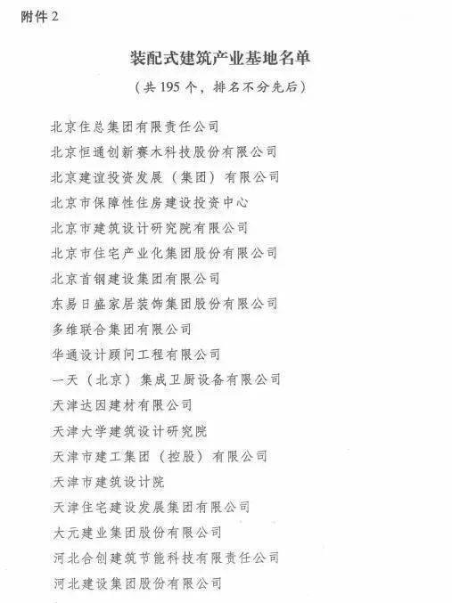 中天建設(shè)、龍信建設(shè)、南通三建、蘇州金螳螂、寧波建工、上海城建等195個企業(yè),被認(rèn)定為第 一批裝配式建筑產(chǎn)業(yè)基地。(具體名單附后)